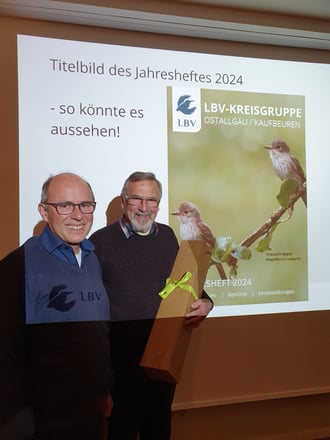 Links im Bild mit der Fotomontage zum geplanten Jahresheft 2024 der LBV Kreisgruppe